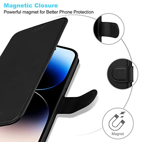 Keallce Custodia per iPhone 14 Pro Max, iPhone 14 Pro Max, in pelle, iPhone 14 Pro Max, custodia a portafoglio in pelle PU, compatibile con iPhone 14 Pro Max, in pelle da 6,7", colore: nero