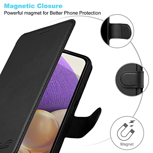 Keallce Custodia per Samsung Galaxy A32 5G, Cover in Pelle PU Custodia a Portafoglio con Slot Schede, Chiusura Magnetica e Cavalletto Flip Case per Samsung Galaxy A32 5G - 6.5", Nero