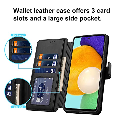 Modello compatibile: questa custodia a portafoglio in pelle è stata appositamente progettata per il vostro cellulare Samsung Galaxy A52 5G (6,5 pollici), con chiusura magnetica, funzione leggio e scomparti per carte di credito, compatibile con Samsung Galaxy A52 5G - 6,5 pollici.