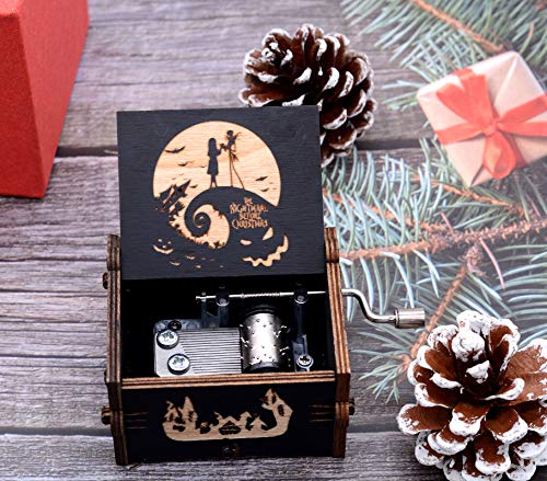 Keast - Carillon a manovella vintage, in legno intagliato con motivo del film The Nightmare Before Christmas, riproduce la melodia “This is Halloween”, idea regalo per figlia, da parte di mamma e papà