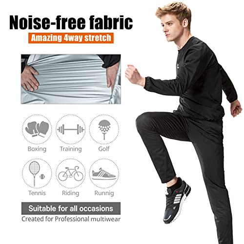 KEBILI Tuta da Sauna per Donna, Felpa e Pantaloni da Uomo, Allenamento per la Perdita di Peso Abito Rotondo Nero Top - 3XL / Pantaloni - 3XL