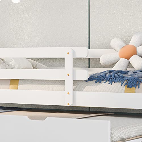 KecDuey Letto per casa sull'albero, letto singolo, letto per bambini, letto estraibile, letto scorrevole con ruote inferiori, in legno massello, bianco
