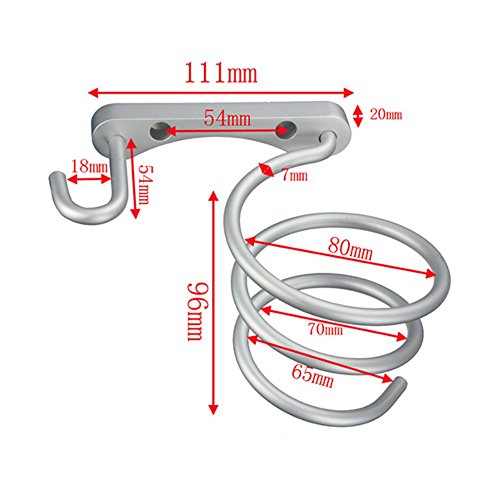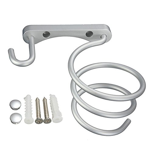 KedBrok 1PC Asciugacapelli Contenitore Bagno Organizzatore Salone Spirale Asciugacapelli Supporto Stand Supporto a Parete con Rack con Attacco Gancio Alluminio Capelli Straightener
