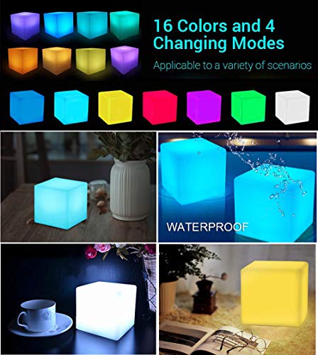 KEEDA Impermeabilizza Lampada Cubo LED senza Fili con Telecomando, LED Mood Lights Luce notturna a cambiamento di colore con 16 colori RGB, Ricaricabile Lampada da Comodino (20 x20 x20 cm)