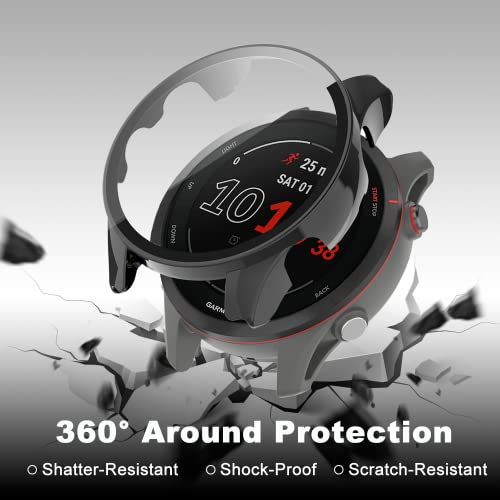 KeeFos [2 Pezzi] Custodia Compatibile con Garmin Forerunner 255, [Con Vetro Temperato], Protezione Completa, 9H HD Anti-Graffio PC Cover Case per Garmin Forerunner 255 (Trasparente+Nero)