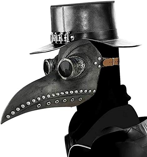 KEEHOM - Maschera del medico della peste in lattice, naso lungo a becco d'uccello, stile steampunk, per Halloween, cosplay, travestimenti, costume per adulti, cintura regolabile, nero