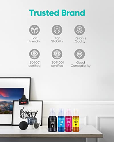 KEENKLE 102 Multipack Inchiostro Compatibile per Epson 102 Flacone di inchiostro per Epson ET-4750 ET-3700 ET-3750 ET-2700 ET-2750 ET-2751 ET-2756 ET-15000 Nero Ciano Magenta Giallo