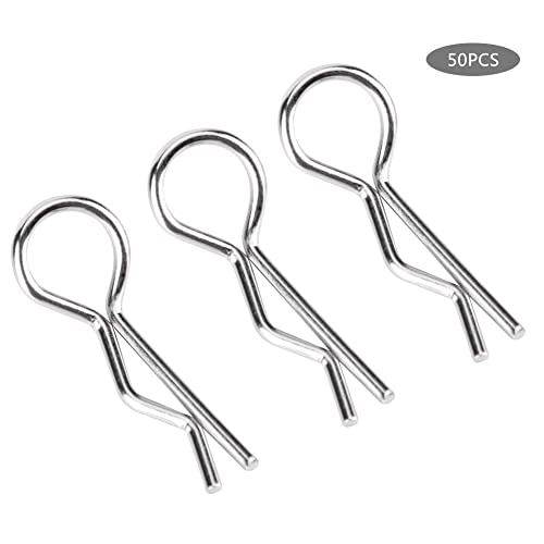 Keenso Clip RC per auto R, 50 pezzi perni a forma di R Accessori per parti RC Adatto per 1/10 HSP RC Auto/Yikong 1/18 RC Modello di veicolo per auto(Argento)