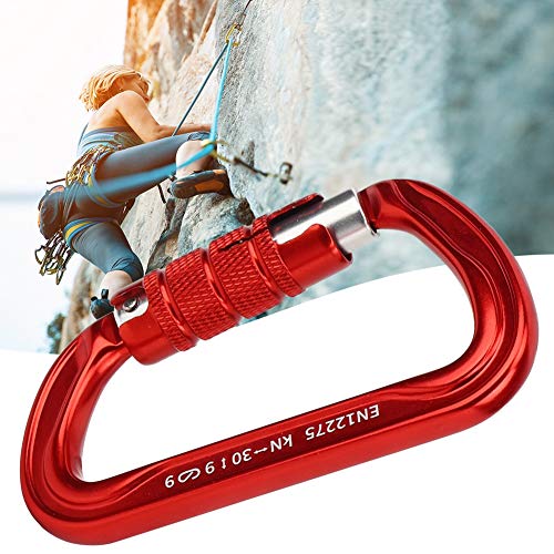 Keenso Fibbia di Sicurezza con moschettone per Arrampicata all'aperto Fibbia con moschettone di Tipo D per Arrampicata(Rosso) Altri Prodotti per Gli Sport estremi