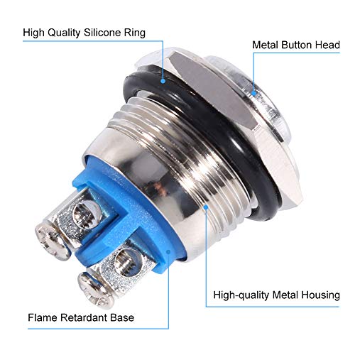 Keenso Interruttore a Pulsante Momentaneo in Metallo, Pulsante di Avvio Antipolvere Impermeabile ON/off con 2 Morsetto a Vite per Foro di Montaggio da 5 mm 5/8 "casa Auto
