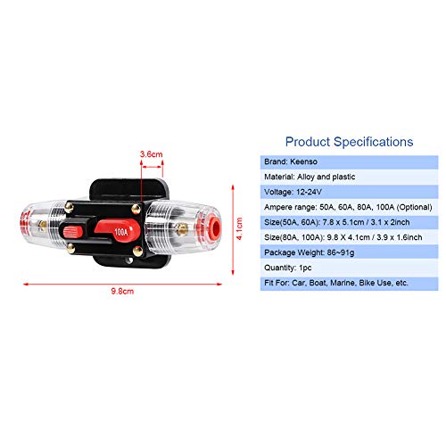 Keenso - Portafusibile di reset per disgiuntore, per auto e barche, impermeabile, per sistema di protezione, 12 V-24 V 50 A 60 A 80 A 100 A