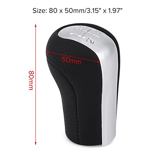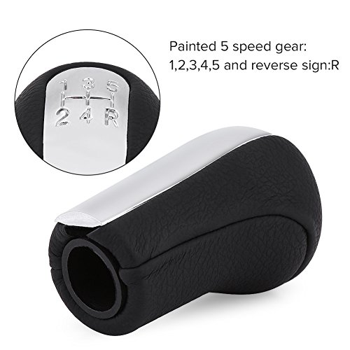 【Materiale di alta qualità】 Il pomello del cambio a 5 marce MT è realizzato in pelle PU e plastica PVC di alta qualità, per rendere il nostro prodotto durevole, comodo da usare e resistente alla corrosione ed ecologico.Questo pomello del cambio a 5 marce sostituisce perfettamente il tuo vecchio.5 marce (1, 2, 3, 4, 5) e segno di retromarcia nella parte superiore, senza scolorimento