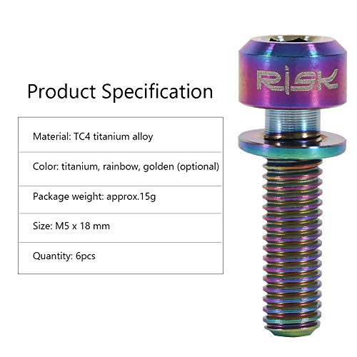 Keenso 6 Pz Viti Bullone, TC4 Lega M5 x 18mm Viti Viti Viti tonde Viti con rondelle fissate per Attacco Manubrio Mountain Bike(Arcobaleno)