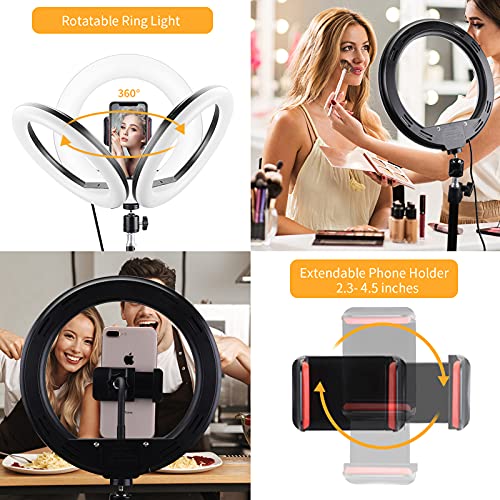 ☀ 【Anello luminoso a LED multifunzionale】 La luce ad anello è dotata di un supporto per telefono cellulare estensibile con una gamma di clip da 5,3 a 4,5 pollici, compatibile con quasi tutti gli smartphone, una scelta perfetta per TikTok, trucco, fotografie, YouTube, Vlogger, Live Stream.