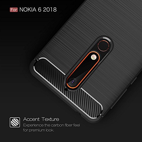Nokia 6.1 6 Nokia 2018 custodia: Custodia protettiva posteriore in fibra di carbonio/fibra realizzata con leggera per una perfetta aderenza migliore con una finitura di alta qualità. Un pezzo Display per il cellulare Nokia 6 2018 modello. Elegante e sottile in TPU con stile, facile a scatto con una sensazione di lusso Morbido al tatto.