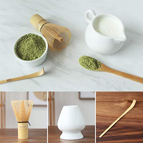 Keepaty - Set da 7 pezzi di tè giapponese Matcha con 100 fruste, supporto per frusta, paletta tradizionale, cucchiaino da tè, setaccio da tè e ciotole in ceramica