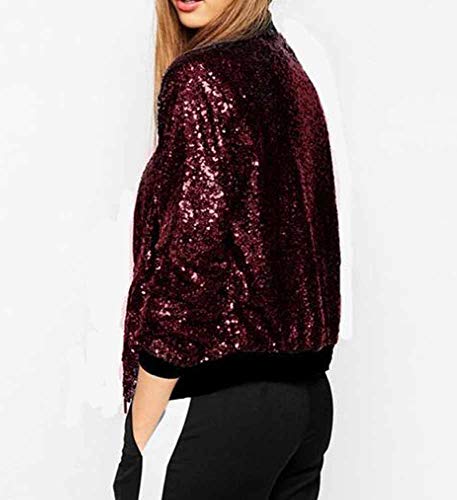 Keepmore Bomber da Donna con Paillettes Glitterato Metallizzato Multicolor da Festival con Tasca