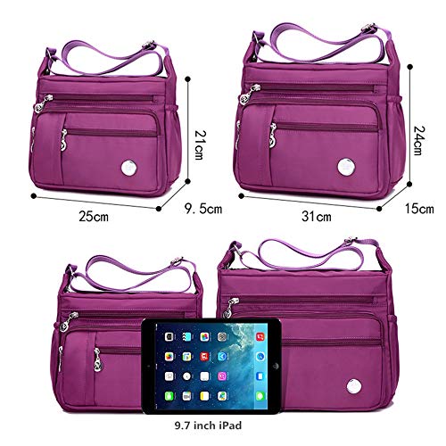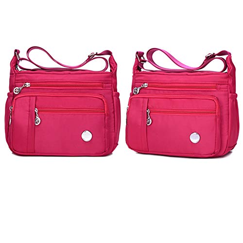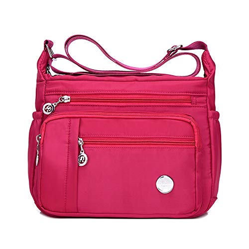 KEEPOP - Borsa a tracolla da donna multitasche, in nylon impermeabile e leggero, Colore: rosa., Small