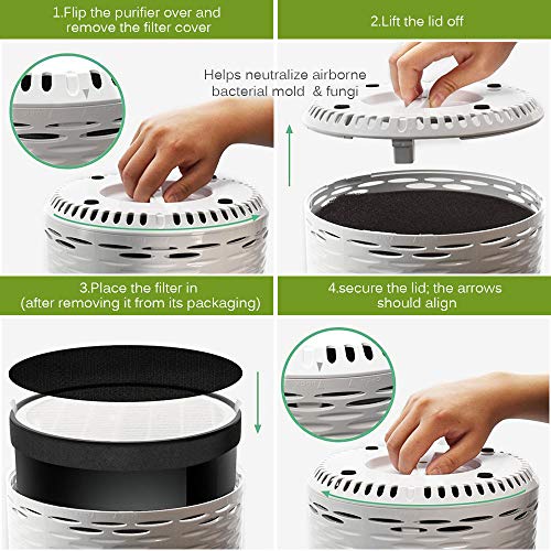 La confezione include: 2 filtri a carbone attivo e 2 filtri HEPA vero. Può essere facilmente sostituito e installato senza bisogno di attrezzi.