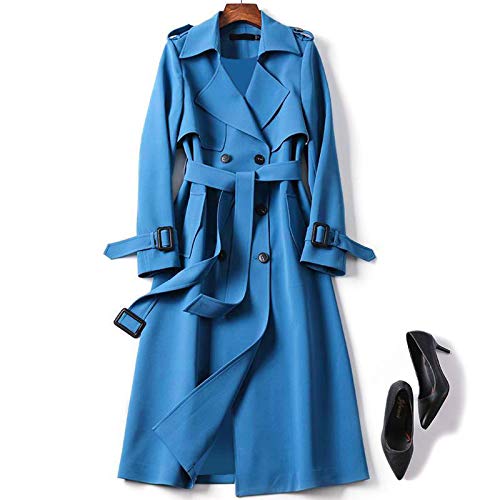 KEERADS Giacca da donna Overcoat Solid Slim Fit Coat Long Outerwear Windbreaker Trench Winter Jacket, blu, L