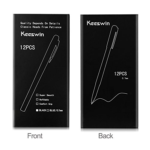 Keeswin - Penna a sfera, ad inchiostro gel, misura media, 0,7 mm, ricaricabile, colore inchiostro: nero, ideale per ufficio & scuola, confezione da 12 pezzi