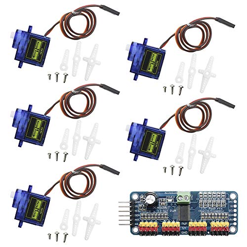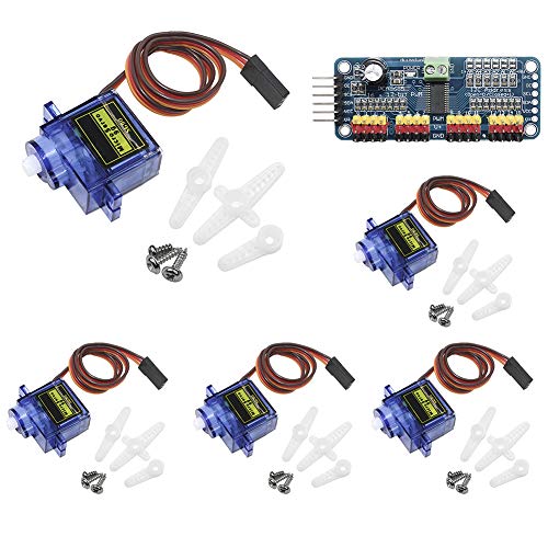 KeeYees 5pcs SG90 9G Micro Servomotore con PCA9685 Modulo 16 Canali 12 Bit PWM Servomotore Driver IIC per Arduino Raspberry Pi RC Modellismo Robot Elicottero Aeroplano Barca di Controll