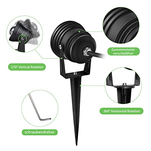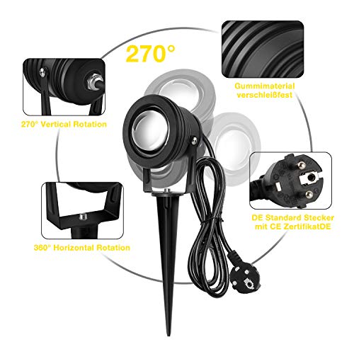 【Facilità di installazione】 Con l'aiuto del picchetto di terra si posiziona il proiettore in modo flessibile sulla terrazza, sul vialetto o ovunque si desideri. La testa del punto girevole può essere diretta a dove paga per mostrare le cose con la luce in scena. Sono inclusi sia la punta a terra che la lampadina a LED.