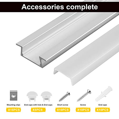 Questa confezione da 5 (ogni elemento misura 1 m. Il profilo LED a forma di U viene fornito insieme ai 5 profili con tutti gli accessori di montaggio: 5 pezzi di copertura in policarbonato bianco latte (1 m);