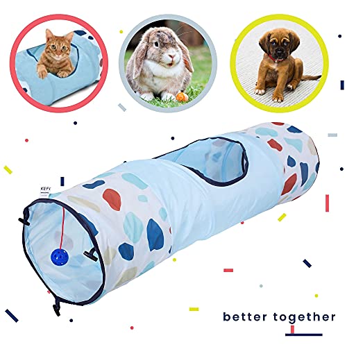 Design: il tunnel ha la forma di un tubo in tessuto con tre vie di ingresso e uscita. Include una palla di plastica con sonaglio per rendere il tempo di gioco del tuo animale domestico ancora migliore.