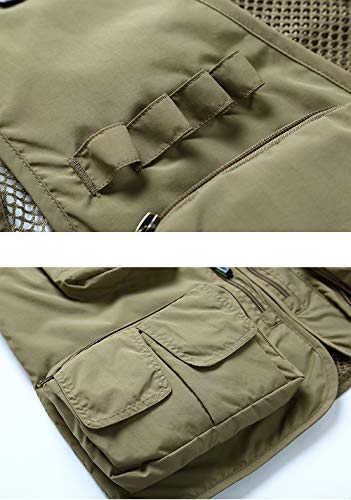 KEFITEVD Gilet da pesca da uomo ad asciugatura rapida traspirante da caccia gilet da campeggio con 15 tasche kaki
