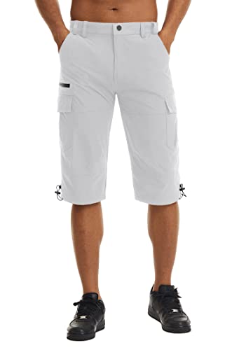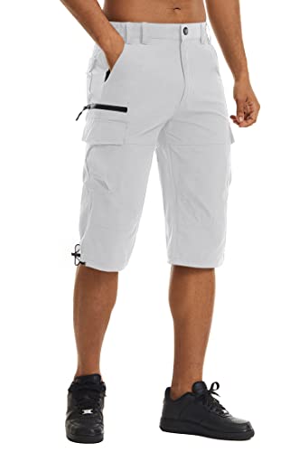 KEFITEVD Pantaloni da uomo a 3/4, ad asciugatura rapida, con elastico in vita, traspiranti, resistenti all'usura, funzionali, per trekking, pesca, arrampicata, bianco, 38
