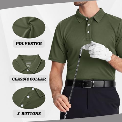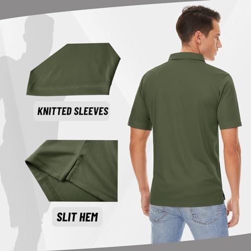 KEFITEVD Polo da uomo, traspirante, ad asciugatura rapida, in poliestere, estiva, da golf, casual, da lavoro, con bottone, Verde militare, 3XL