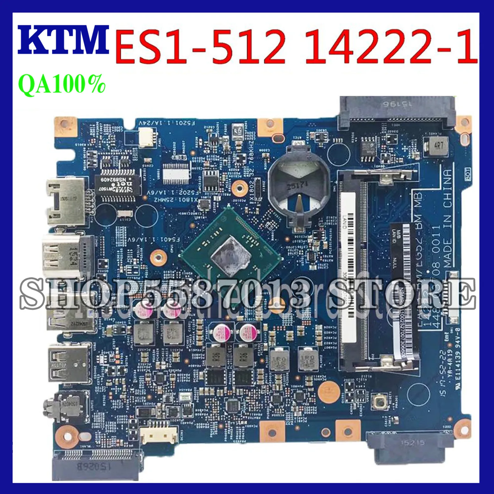 KEFU ES1-512 14222-1 For Acer aspire ES1-512 NBMRW11003 Laptop Motherboard Dual-core CPU EA53-BM EG52-BM Test work 100% original