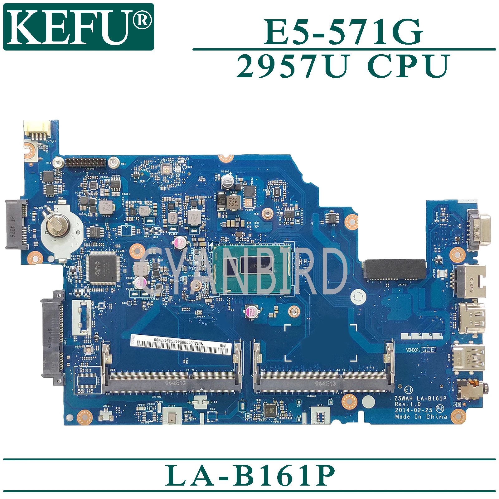 KEFU LA-B161P original mainboard for Acer E5-571G with 2957U CPU Laptop motherboard
