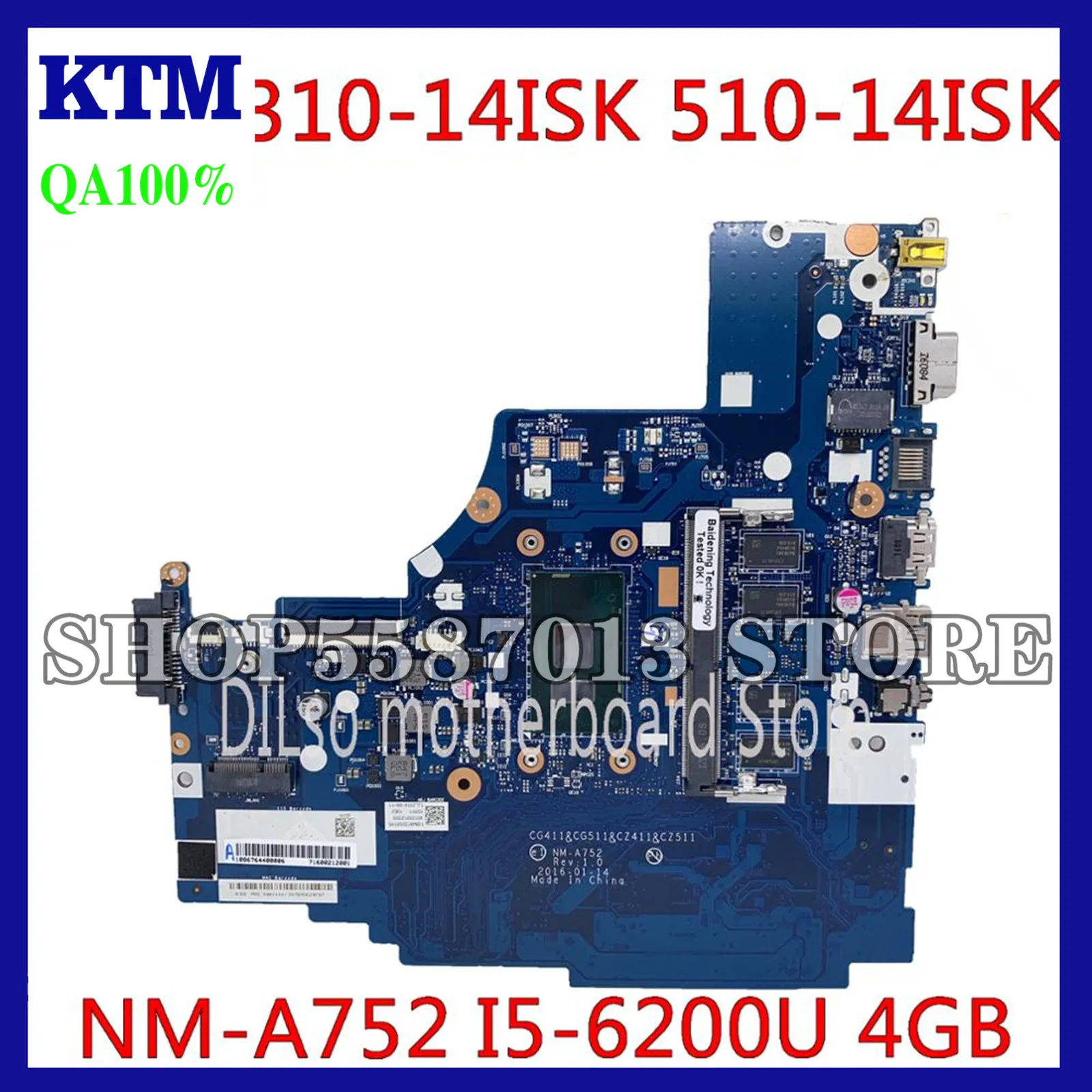 KEFU NM-A752 motherboard for Lenovo 310-14ISK 510-14ISK laptop motherboard For I5-6200U 4GB RAM Test OK
