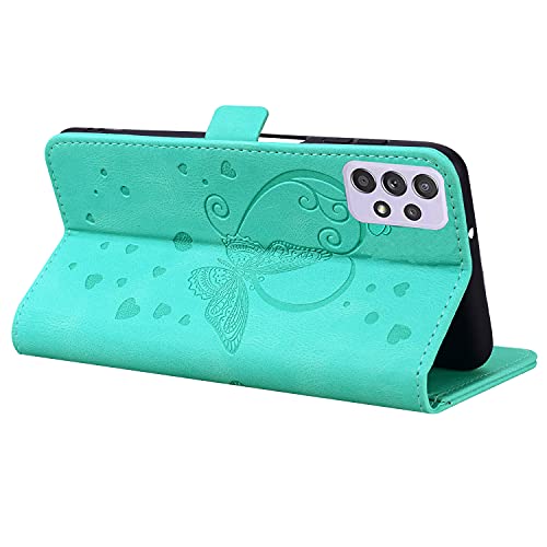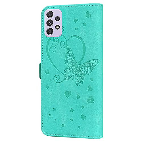 Keikail Cover Compatibile con Samsung Galaxy A52/A52S 4G 5G, Simpatico Cartone Farfalle Cover Custodia Flip in Pelle Magnetica Portafoglio Flip Wallet Case per Samsung A52 /A52S 4G 5G, Verde