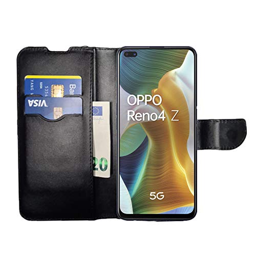 KEJI Cover Custodia per Oppo Reno 4Z 5G, Cover Custodia Libro in Pelle Portafoglio con Supporto Flip Caso Supporto Stand Chiusura Magnetica Oppo Reno 4Z, Elegante (Nero)