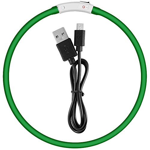 KEKU LED Dog Collare, Collare LED Ricaricabile USB Pet Sicurezza Chiara Impermeabile Fino Lunghezza 50cm (19.5in) Regolabile Lampeggiante Collare(Verde)