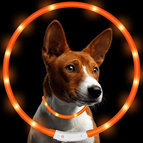 KEKU LED Dog Collare, Collare LED Ricaricabile USB Pet Sicurezza Chiara Impermeabile Fino Lunghezza 50cm (19.5in) Regolabile Lampeggiante Collare-Giallo di Media