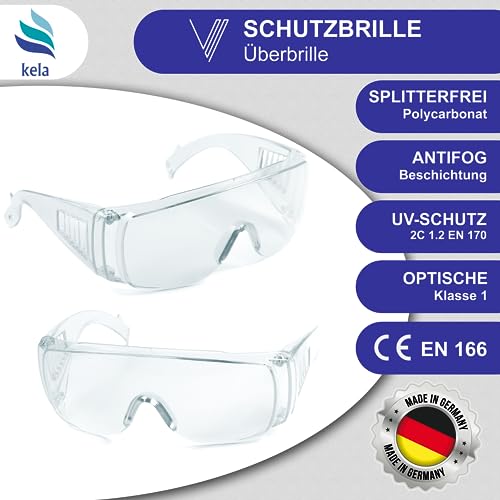 Kela 1 paio di occhiali protettivi I 100% Made in Germany | Occhiali da lavoro infrangibili con rivestimento anti-appannamento, leggeri e trasparenti, adatti per portatori di occhiali