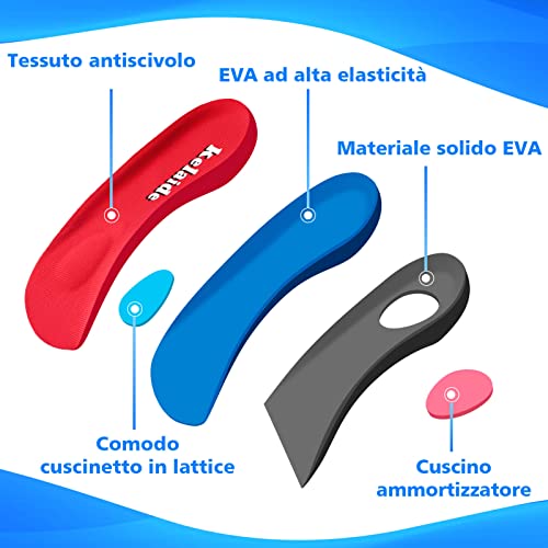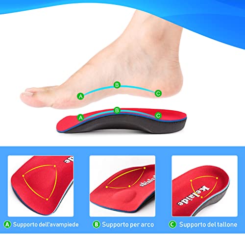 Kelaide 3/4 Solette ortopediche - Plantari ortopedici per funzioni mediche a mezza lunghezza per piede piatto, fascite plantare, sollievo dal dolore al piede o al tallone...