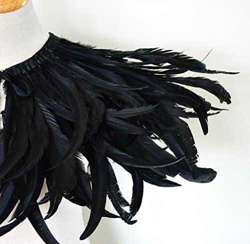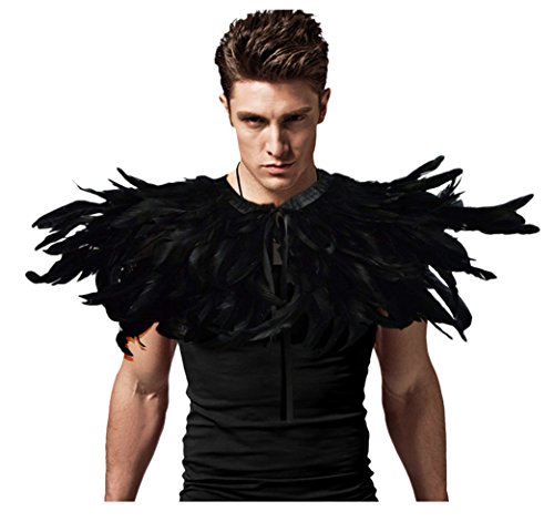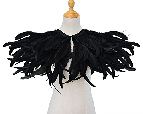 Keland Scialle di Piume Gotico Mantello Coprispalle Colletto Halloween Maleficent Costume (Nero-02)
