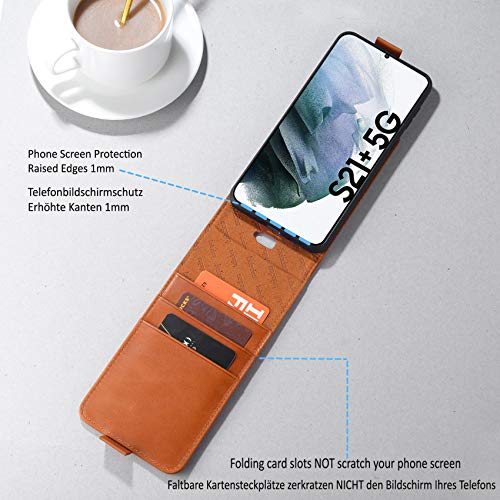 Keledes Custodia per Galaxy S21+ / S21 Plus, Cover Verticale Flip Case in Vera Pelle Antiurto Magnetica a Libro con Slot Schede Blocco RFID per Samsung Galaxy S21 Plus 5G, Marrone