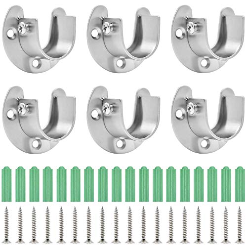 Keleily Asta Armadio Supporto 6 Pezzi Armadio Tubo, Forma di U, Acciaio Inossidabile, Regolabile, Flangia Aperta con Viti, Adatti per Asta della Tenda della Doccia, Argento, 25mm