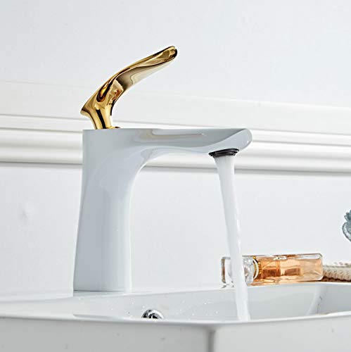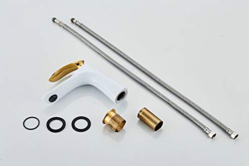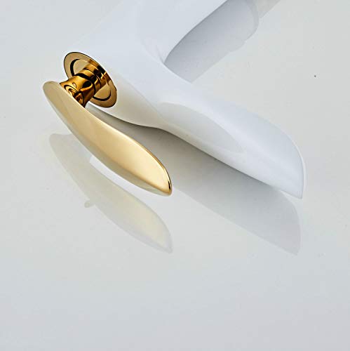Kelelife Ottone Miscelatore Rubinetto per Bagno Lavabo, Bianco e Oro, Serie KF1003