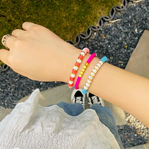 KELITCH Bracciale Donna Elasticizzato Bracciale Arcobaleno Disco D'Oro Bracciale Impilabile Boho Strand Bracciale Gioielli Da Spiaggia Estiva