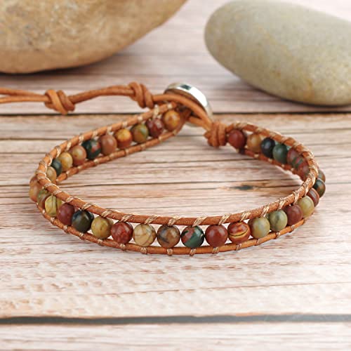 KELITCH Braccialetto di Perle di Agata Braccialetti di Filo Braccialetto Avvolgente in Pelle Braccialetto Regolabile con Polsino Fatto A Mano Nuovo (Marrone)