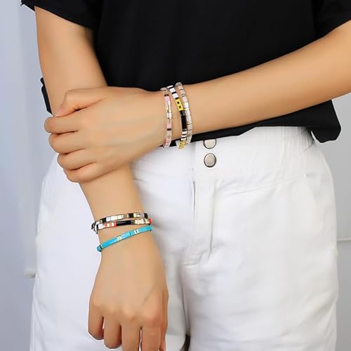 Fatto A Mano Con Amore: I Braccialetti Bohémien Sono Intrecciati Con Cordino Cerato E Perline, Che Hanno Un Nodo Scorsoio Estensibile Per Assicurarsi Che Si Adatti A Tutte Le Dimensioni Del Polso Fino A 10 Pollici Di Lunghezza.