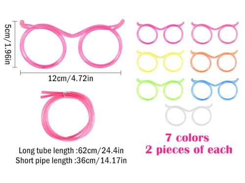 Kellegour 14 Pcs Cannuccia Riutilizzabile Occhiali Divertenti,Cannuccia per Bere Occhiali,Occhiali Divertenti Cannucce Riutilizzabili,Occhiali Cannuccia,per Natale,Matrimoni,Feste per Bambini