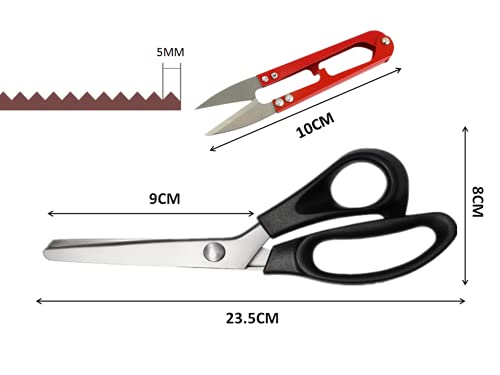 Kellegour Forbici da Sarto Professionali,Forbici Zig Zag per Stoffa,Forbici Cucito,Forbici Sartoria con Tagliafilo e Metro a Nastro Bianco,per Tagliare Tessuti,Abbigliamento,Tessuti,Carta,Artigianato